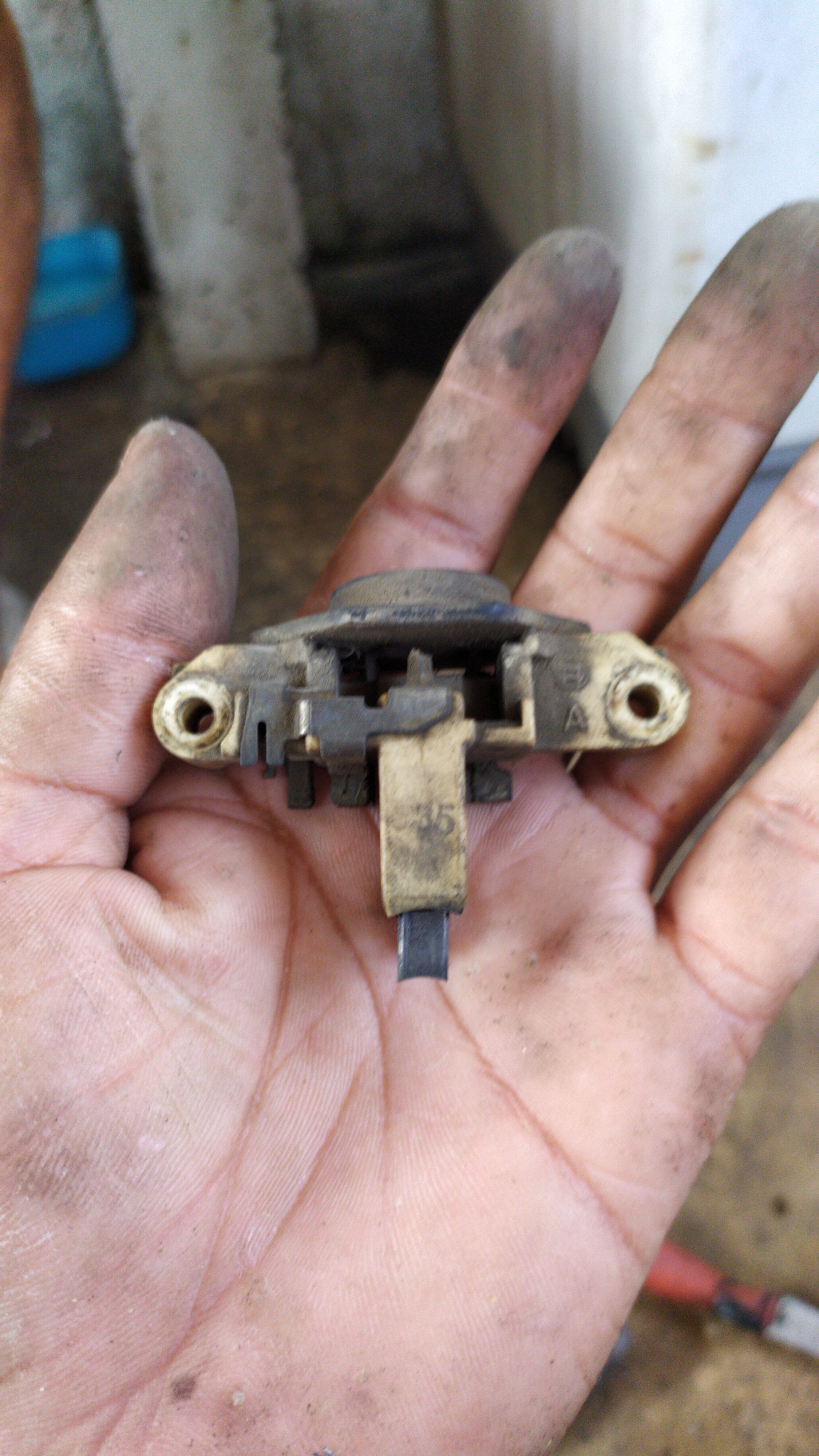 Para medir salida del alternador utilicé un pincel largo y le sujeté en el extremo la punta (+) del multimetro, luego la metí por entre el riel de Los inyectores y el TBi y con la ayuda de una linterna le llegué fino a la salida del alternador, y la punta negativa del multimetro al borne negativo (-) de la batería,.